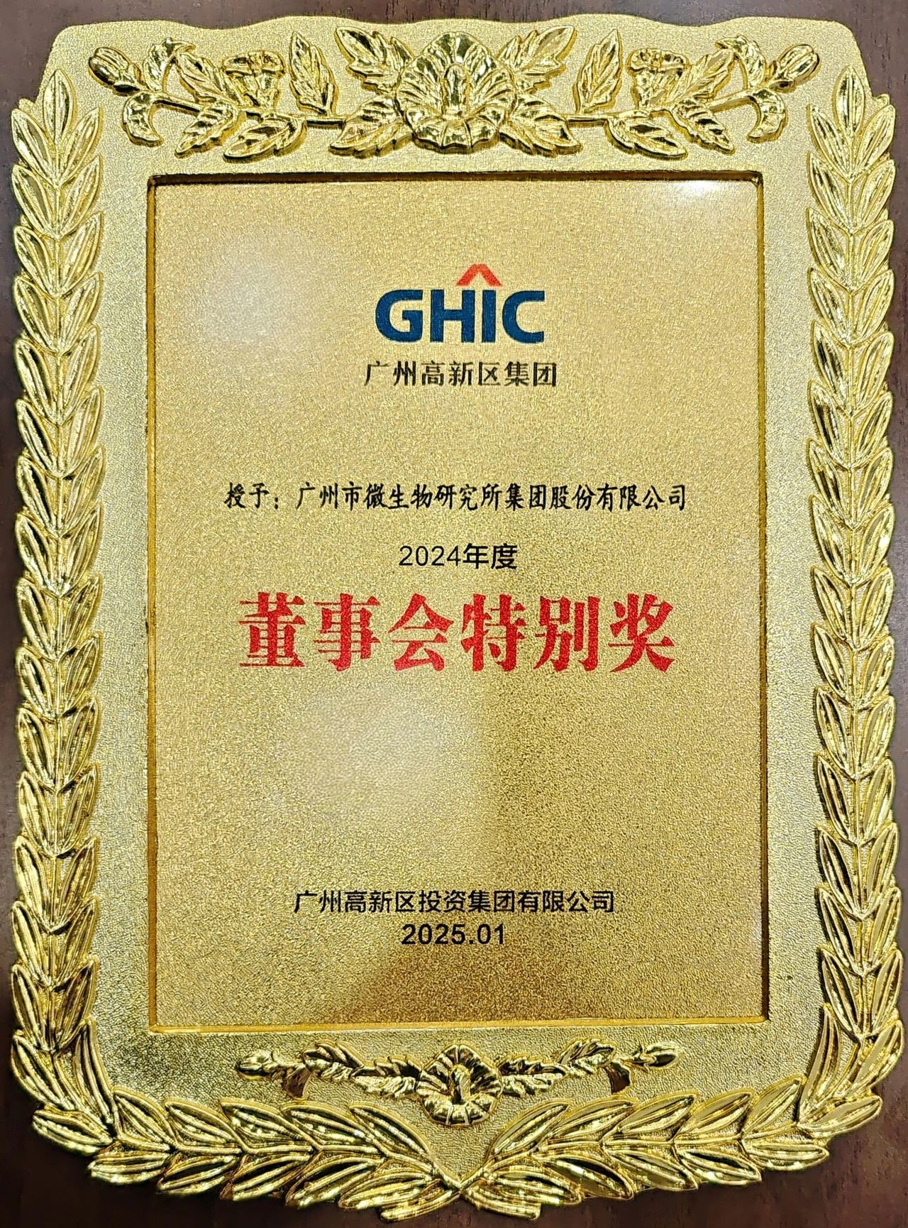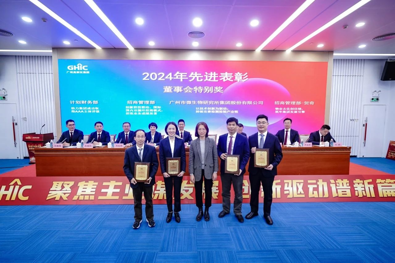 在表彰環節,會議對過去一年中表現突出的個人和團隊進行了隆重表彰。其中,廣州市微生物研究所集團股份有限公司(以下簡稱“廣微所”)因以技術創新為驅動,持續完善檢測檢驗產業鏈,對高新區集團乃至整個行業的科技進步和產業升級做出了重要貢獻,被授予2024年度董事會特別獎。這是對廣微所卓越創新能力和產業引領作用的高度認可。