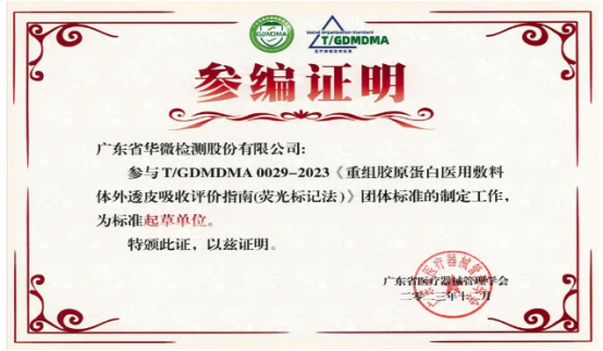 廣東省華微檢測股份有限公司在重組膠原蛋白檢測領域具有豐富的經驗,協助廣州暨創醫療生物科技有限公司“重組膠原蛋白液體敷料“進行“不可被人體吸收的相關研究”,得到審評認可,並成功獲得廣東省首家重組膠原蛋白敷料產品注冊證(證書編號:粵械注準20242141645)。
