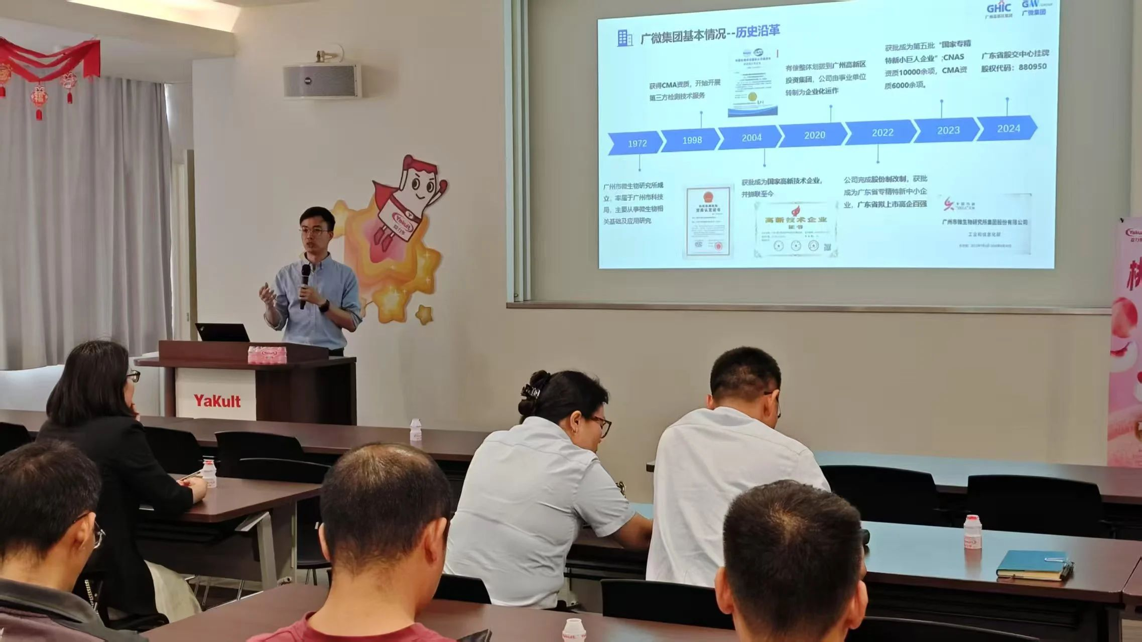 隨後,廣微集團市場部副部長、衡創公司副總經理鄭飛龍作為代表詳細介紹了廣微集團的發展曆程與業務布局。交流會中廣微集團誠意分享益生菌固體飲料、靈芝孢子粉、精釀啤酒等產學研孵化產品,並邀約雙方推進腸道微生態健康課題研討,共創多樣化科普研學實踐與品牌聯營合作。