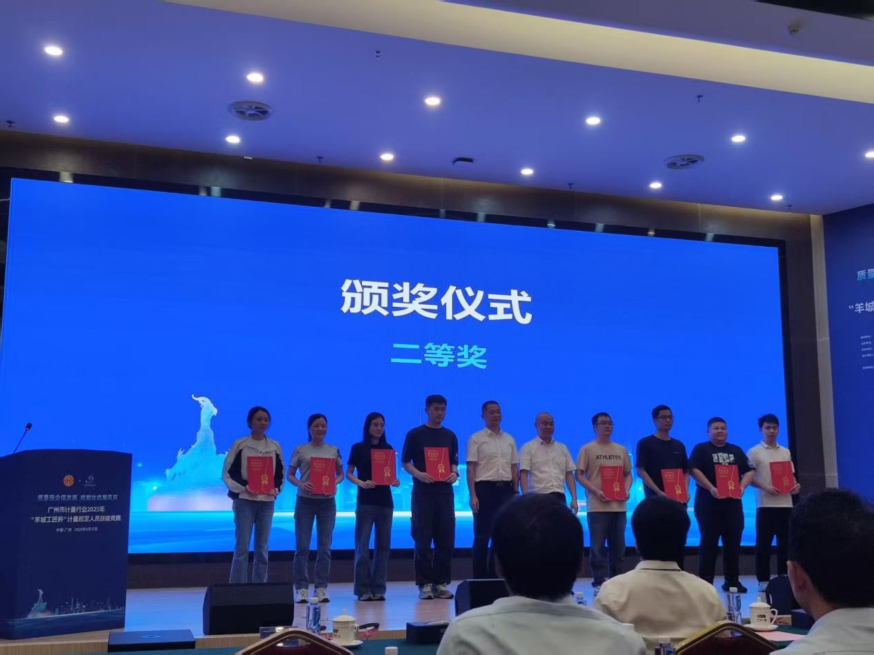 5月17日,廣州市計量行業2025年“羊城工匠杯”計量檢定人員技能競賽在廣州成功舉行。廣州廣微計量檢測技術有限公司(廣微計量)參賽選手吳杏芳同誌榮獲二等獎。
