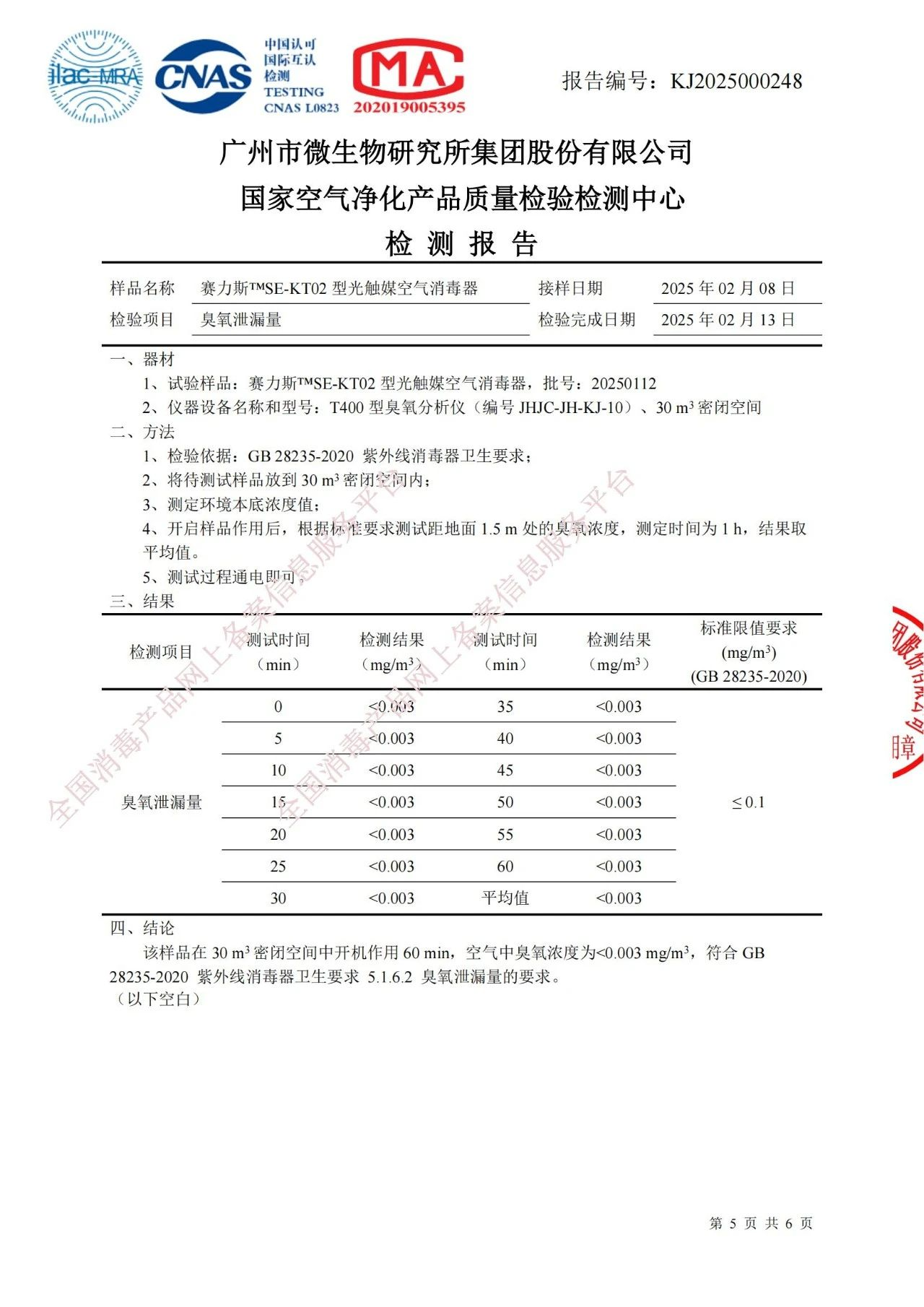 廣州市微生物研究所集團股份有限公司(國家空氣淨化產品質量檢驗檢測中心)受委托後,對問界M8車載空氣淨化過濾係統進行了專業嚴謹的檢測,以驗證其性能的安全性和可靠性。測試數據顯示,其對常見的流感病毒 H1N1,15 分鍾去除率>99.99%;對白色葡萄球菌 15 分鍾滅殺率>99.9%;對空氣自然菌30 分鍾消亡率>94%,殺菌除汙效果顯著;臭氧泄漏量控製在0.003mg/m³以下,各項指標均符合相關標準。