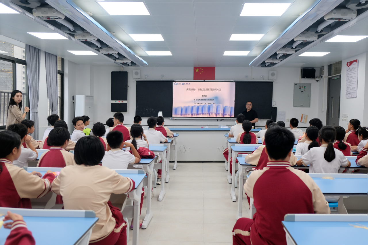 11月11日,由廣州市黃埔區科學技術協會主辦、廣州市微生物研究所集團股份有限公司承辦的“2025年科普課程研發項目”《探秘微觀小世界,解鎖健康生活大奧秘》係列科普課程,在湖南師範大學附屬黃埔實驗學校開展課程第五講“病毒探秘:從微觀世界到健康防線”。