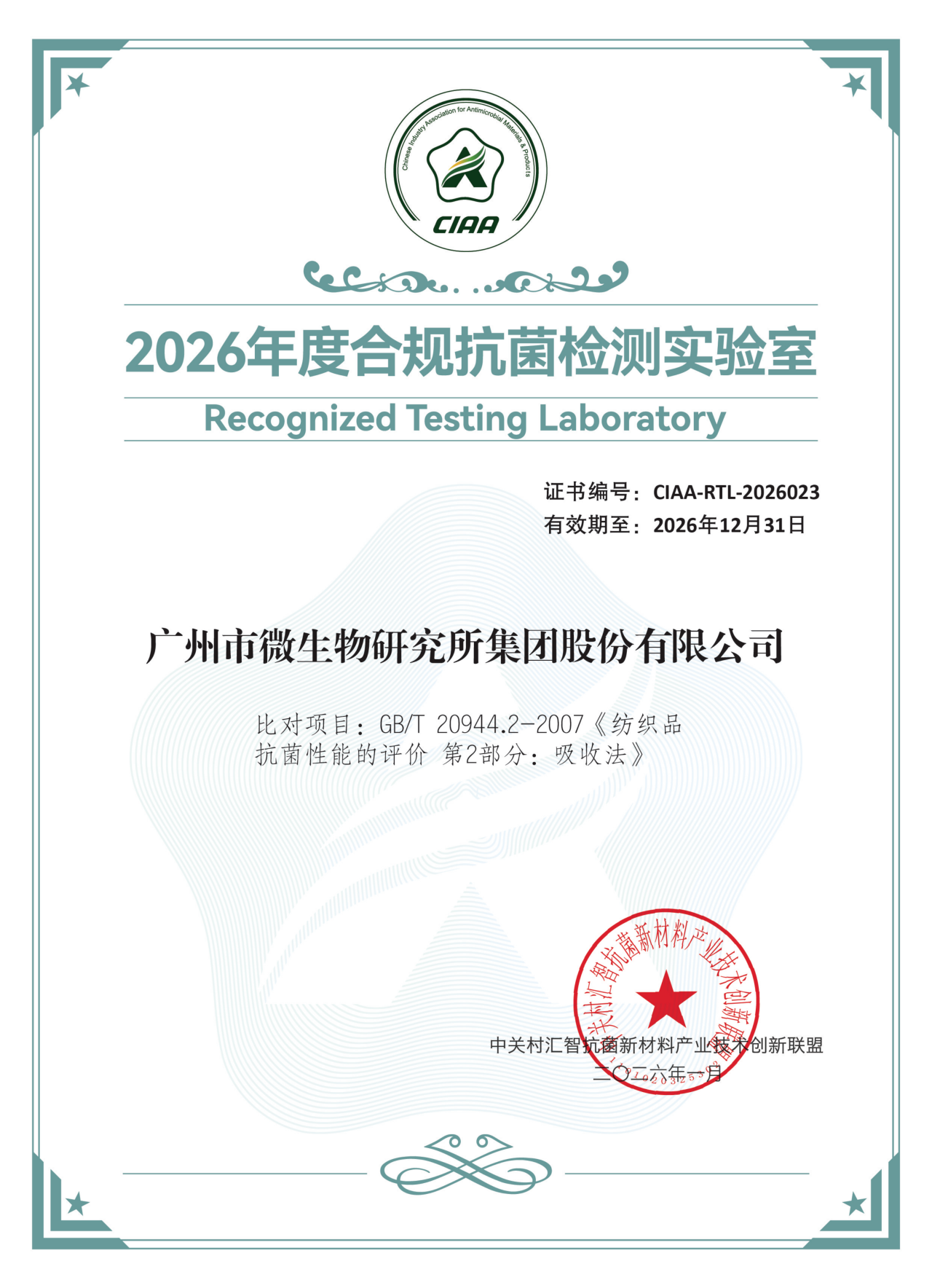 作為CIAA長chang期qi戰zhan略lve合he作zuo夥huo伴ban,廣guang微wei集ji團tuan是shi國guo內nei抗kang菌jun防fang黴mei領ling域yu較jiao具ju實shi力li和he較jiao早zao開kai展zhan相xiang關guan檢jian測ce的de國guo有you第di三san方fang機ji構gou,目mu前qian已yi取qu得de全quan麵mian的de抗kang菌jun防fang黴mei等deng產chan品pin檢jian測ceCMA及CNAS資質,能力範圍覆蓋抗菌、防黴、防蟎、除臭等相關產品檢驗標準100餘項。近年來,我司持續參與CIAA抗菌標準製定,助力推動多項團體標準落地,為企業生產抗菌產品提供科學依據。
